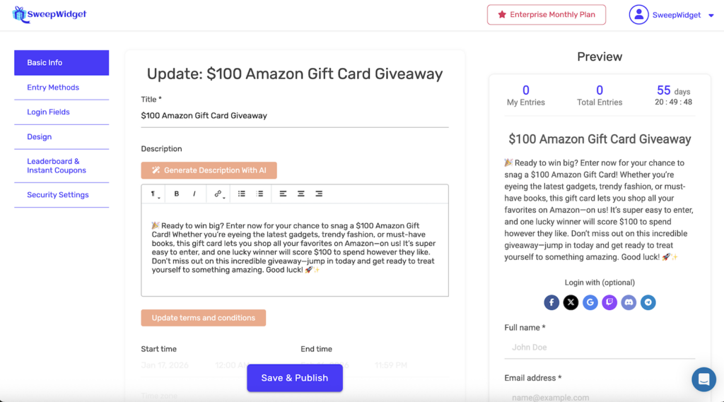 - End Date – When the giveaway ends