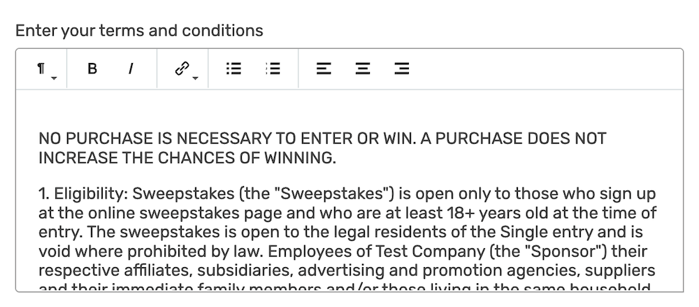 - Terms and conditions generator – A button to auto-generate official rules