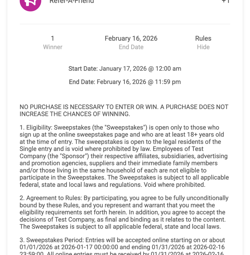 - Test the display – Preview your giveaway to ensure rules display correctly