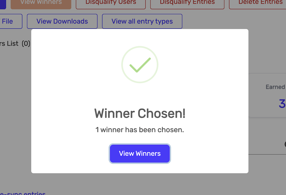 A success message will appear confirming your winners have been chosen: