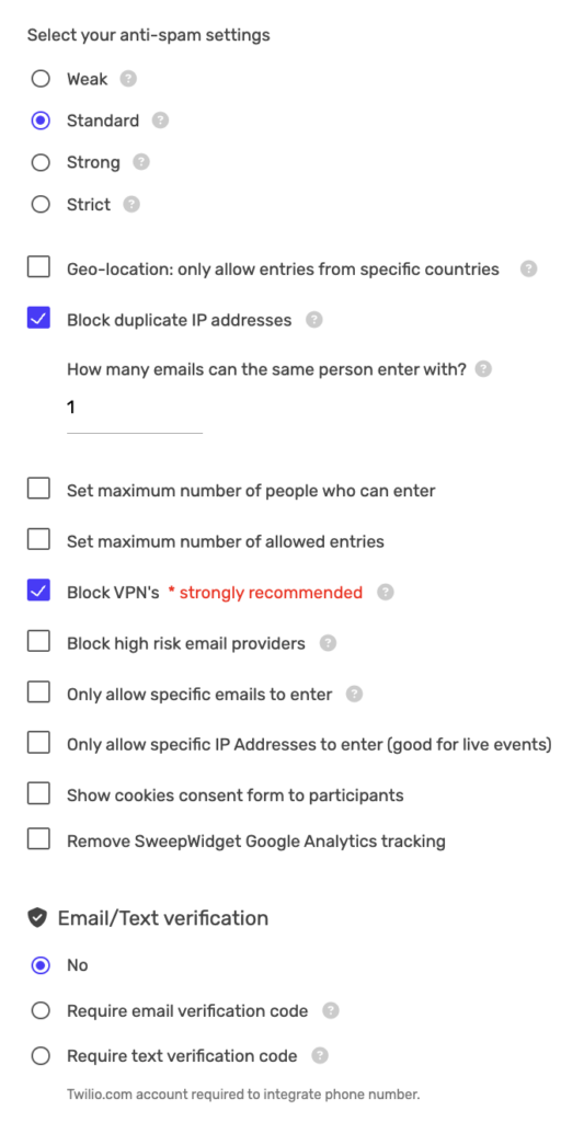 • Only allow specific emails to enter – Create an email whitelist for exclusive contests